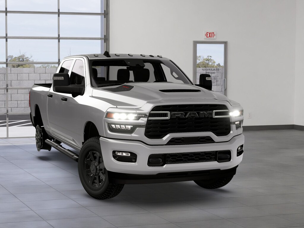 Our Service Department & Express Lane are open convenient hours during the week and Saturday. We also offer a free service shuttle for local customers, a customer lounge with free coffee and popcorn, as well as free wireless internet. We also offer a free car wash with every service. This vehicle features Bed Utility Group (LED Bed Lighting, MOPAR Deployable Bed Step, and MOPAR Spray in Bedliner), Quick Order Package 2UC Black Express (2 Way Rear Headrest Seat, 4 Way Front Headrests, 40/20/40 Split Bench Seat, Auto Power-Folding Mirrors, Black Exterior Mirrors, Black Wheel Center Hub, Body Color Grille-Surround, Carpet Floor Covering, Cloth 40/20/40 Bench Seat, Exterior Mirrors Courtesy Lamps, Exterior Mirrors with Heating Element, Exterior Mirrors with Supplemental Signals, Forward and Reverse Utility Lights, Front and Rear Floor Mats, Front Armrest with Cupholders, Manual Adjust 4-Way Driver Seat, Manual Adjust 4-Way Front Passenger Seat, Mirror Running Lights, Mopar Black Tubular Side Steps, Painted Front Bumper, Painted Rear Bumper, ParkSense Front/Rear Park Assist System, Power Adjust Mirrors, Power Heated Folding Telescopic Mirrors, Power Telescoping Mirrors, Power-Adjustable Convex Aux Mirrors, Rear Folding Seat, Remote USB Port - Charge Only, Sport Performance Hood, Storage Tray, and Wheels: 20" x 8.0" Black Painted Aluminum), Tradesman Level 1 Equipment Group (115-Volt Auxiliary Front Power Outlet, 12" Touchscreen Display, 400W Inverter, 4G LTE Wi-Fi Hot Spot, Air Conditioning ATC with Dual Zone Control, Alexa Built-in, Apple CarPlay, Auto-Dimming Rear-View Mirror, Connected Travel and Traffic Services, Connectivity - US/Canada, Disassociated Touchscreen Display, Emergency Vehicle Alert System (EVAS), Exterior 115V AC Outlet, For Details, Visit DriveUconnect.com, For More Info, Call 800-643-2112, Global Telematics Box Module, Google Android Auto, GPS Antenna Input, GPS Navigation, HD Radio, Integrated Voice Command with Bluetooth, Off-Road Info Pages, Radio: Uconnect 5 Navigation with 12.0" Display, Rear Power Sliding Window, Selectable Tire Fill Alert, SiriusXM Radio Service, SiriusXM with 360L, Tinted Acoustic Windshield Glass, and Trailer Tow Pages), 3.73 Axle Ratio, 4-Wheel Disc Brakes, 5th Wheel/Gooseneck Towing Prep Group, 6 Speakers, ABS brakes, Air Conditioning, AM/FM radio: SiriusXM, Anti-Spin Differential Rear Axle, Apple CarPlay/Android Auto, Brake assist, Clearance Lamps, Compass, Delay-off headlights, Driver door bin, Dual front impact airbags, Dual front side impact airbags, Electronic Stability Control, Front anti-roll bar, Front Center Armrest w/Storage, Front fog lights, Front reading lights, Fully automatic headlights, Illuminated entry, Low tire pressure warning, Manual Folding Exterior Mirrors, Manuarl Telescoping Mirrors, Manufacturer's Statement of Origin, MOPAR Front and Rear Rubber Floor Mats, MyFlexCare Service Plan, Occupant sensing airbag, Outside temperature display, Overhead airbag, Overhead console, Panic alarm, ParkView Rear Back-Up Camera, Passenger door bin, Passenger vanity mirror, Power steering, Power windows, Radio data system, Radio: Uconnect 5 with 8.4" Display, Rear anti-roll bar, Rear step bumper, Rear Wheelhouse Liners, Rear window defroster, Remote keyless entry, Speed control, Tachometer, Tilt steering wheel, Traction control, Variably intermittent wipers, Voltmeter, and Wheels: 17" x 7.5" Black Steel StyleD. Price includes: $1000 - 2026 National Bonus Cash . Exp. 01/05/2026 $2000 - 2026 National Holiday Select Inventory Bonus Cash. Exp. 01/05/2026 $2,000 - Exp. 12/31/2025