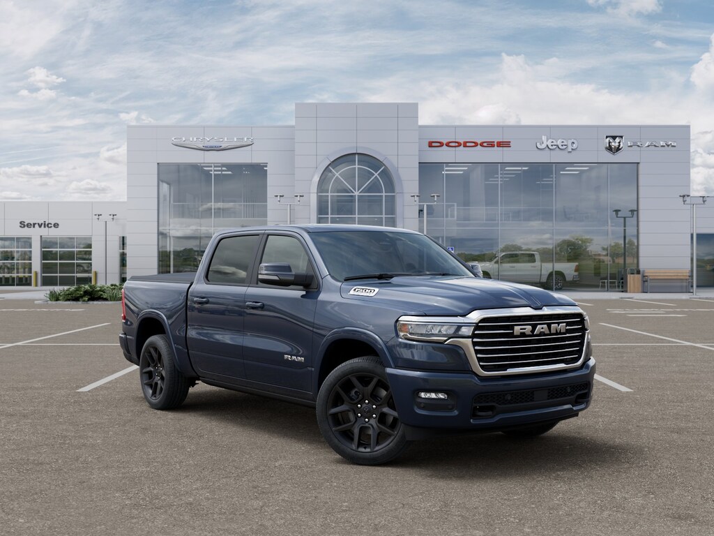 Our Service Department & Express Lane are open convenient hours during the week and Saturday. We also offer a free service shuttle for local customers, a customer lounge with free coffee and popcorn, as well as free wireless internet. We also offer a free car wash with every service. This vehicle features Bed Utility Group (Exterior 115V AC Outlet, MOPAR 4 Adjustable Cargo Tie-Down Hooks, and MOPAR Spray in Bedliner), Laramie Level 1 Equipment Group (Rain Sensitive Windshield Wipers and Remote Tailgate Release), Laramie Preferred Package (Accent Color Premium Power Mirrors, Auto Power-Folding Mirrors, Auto-Dimming Exterior Driver Mirror, Black Painted Exterior Mirrors Caps, Body Color Front Bumper, Body Color Rear Bumper with Step Pads, Convex Wide-Angle Exterior Mirror Insert, Dome Dual LED Reading Lamp, Dual-Pane Panoramic Sunroof, Exterior Mirrors Courtesy Lamps, Exterior Mirrors with Heating Element, Exterior Mirrors with Memory, Exterior Mirrors with Supplemental Signals, Grille Surround 3 Body Color Tex 4 Chrome, LED Dome/Reading Lamp, Power Deployable Running Boards, RAM Grille Badge - Chrome, Tow Hooks, and Trailer Brake Control), Quick Order Package 21H Laramie, 10 Speakers, 3.55 Rear Axle Ratio, 4-Wheel Disc Brakes, 4G LTE Wi-Fi Hot Spot, ABS brakes, Active Noise Control System, Adjustable pedals, Air Conditioning, Alloy wheels, AM/FM radio: SiriusXM with 360L, Apple CarPlay/Android Auto, Audio memory, Auto High-beam Headlights, Auto-dimming door mirrors, Auto-dimming Rear-View mirror, Automatic temperature control, Brake assist, Bumpers: chrome, Chrome Exterior Mirrors, Compass, Connected Travel and Traffic Services, Connectivity - US/Canada, Delay-off headlights, Driver door bin, Driver vanity mirror, Dual front impact airbags, Dual front side impact airbags, Electronic Stability Control, Front anti-roll bar, Front Bucket Seats, Front Center Armrest w/Storage, Front dual zone A/C, Front fog lights, Front reading lights, Front wheel independent suspension, Fully automatic headlights, Garage door transmitter, GPS Navigation, Heated door mirrors, Heated front seats, Heated rear seats, Heated steering wheel, Illuminated entry, Integrated Center Stack Radio, Integrated Voice Command with Bluetooth, Leather steering wheel, Leather Trimmed Bucket Seats, Low tire pressure warning, Memory seat, MOPAR Front and Rear Rubber Floor Mats, MyFlexCare Service Plan, Navigation System, Occupant sensing airbag, Off-Road Information Pages, Outside temperature display, Overhead airbag, Overhead console, Panic alarm, ParkView Rear Back-Up Camera, Passenger door bin, Passenger vanity mirror, Pedal memory, Pirelli Brand Tires, Power door mirrors, Power driver seat, Power passenger seat, Power steering, Power windows, Radio data system, Radio: Uconnect 5 Navigation with 12.0" Display, Rear anti-roll bar, Rear reading lights, Rear seat center armrest, Rear step bumper, Rear Wheelhouse Liners, Remote keyless entry, Security system, SiriusXM Radio Service, SiriusXM with 360L, Speed control, Split folding rear seat, Steering wheel mounted audio controls, Tachometer, Telescoping steering wheel, Tilt steering wheel, Traction control, Tri-Fold Tonneau Cover, Trip computer, Turn signal indicator mirrors, USB Host Flip, Variably intermittent wipers, Ventilated front seats, Voltmeter, Wheels: 20" x 9" Premium Paint/Polish, and Wheels: 22" x 9" Forged Aluminum. Price includes: $1500 - 2026 Great Lakes BC Select Inventory Bonus Cash w/ 5PD . Exp. 03/31/2026 $3500 - 2026 National Retail Consumer Cash . Exp. 03/31/2026