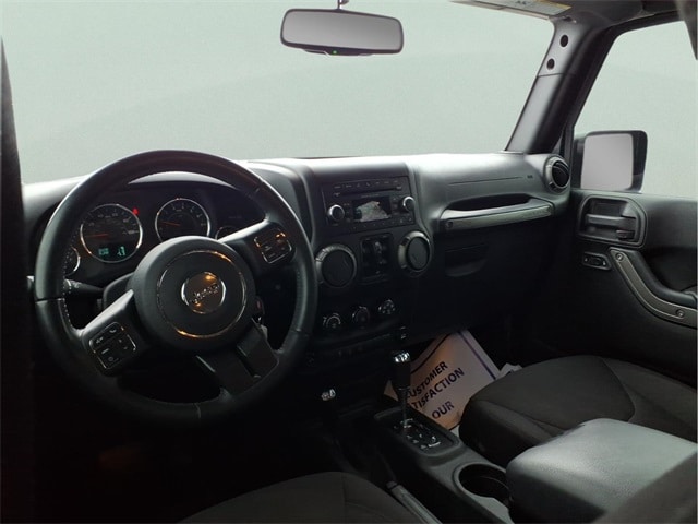 Our Service Department & Express Lane are open convenient hours during the week and Saturday. We also offer a free service shuttle for local customers, a customer lounge with free coffee and popcorn, as well as free wireless internet. We also offer a free car wash with every service. Connectivity Group (Remote USB Port, Tire Pressure Monitoring Display, Uconnect Voice Command w/Bluetooth, and Vehicle Information Center), LED Lighting Group (LED Fog Lamps and LED Reflector Headlamps), Quick Order Package 24W Willys Wheeler (1-Yr SiriusXM Radio Service, 4-Wheel Drive Swing Gate Decal, Anti-Spin Differential Rear Axle, Auto-Dimming Mirror w/Reading Lamp, Black Jeep Grille Badge, Deep Tint Sunscreen Windows, Front 1-Touch Down Power Windows, Jeep Trail Rated Kit, MOPAR Slush Mats, Performance Suspension, Power Convenience Group, Power Heated Mirrors, Power Locks, Rear Passenger Assist Handles Kit, Remote Keyless Entry, Security Alarm, SIRIUS Satellite Radio, Wheels: 17" x 7.5" High Gloss Black Willys, Willys Hood Decal, and Willys Wheeler Grille), Willys Wheeler Package, 16" x 7.0" Luxury Styled Steel Wheels, 4-Wheel Disc Brakes, 8 Speakers, ABS brakes, Air Conditioning, Alpine 9-Speaker w/All Weather Subwoofer, AM/FM radio, Black 3-Piece Hard Top, Brake assist, CD player, Cloth Seats w/Adjustable Head Restraints, Compass, Delete Sunrider Soft Top, Driver door bin, Driver vanity mirror, Dual front impact airbags, Electronic Stability Control, Freedom Panel Storage Bag, Freedom Top Hard Top Headliner, Front anti-roll bar, Front Bucket Seats, Front Center Armrest w/Storage, Front fog lights, Integrated roll-over protection, Low tire pressure warning, Manufacturer's Statement of Origin, Normal Duty Suspension, Occupant sensing airbag, Outside temperature display, Passenger door bin, Passenger vanity mirror, Power steering, Radio: 130, Rear anti-roll bar, Rear Window Defroster, Rear Window Wiper/Washer, Speed control, Split folding rear seat, Steering wheel mounted audio controls, Tachometer, Tilt steering wheel, Traction control, Trip computer, and Variably intermittent wipers.