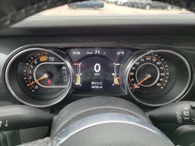 Our Service Department & Express Lane are open convenient hours during the week and Saturday. We also offer a free service shuttle for local customers, a customer lounge with free coffee and popcorn, as well as free wireless internet. We also offer a free car wash with every service. Advanced Safety Group (Advanced Brake Assist, Auto High Beam Headlamp Control, and Full Speed Forward Collision Warning Plus), Altitude Package, Cold Weather Group (Heated Front Seats and Heated Steering Wheel), LED Lighting Group (Daytime Running Lamps LED Accents, Front LED Fog Lamps, LED Premium Reflector Headlamps, and LED Taillamps), Quick Order Package 22L Altitude (110 MPH Vehicle Max Speed Calibration, Black Interior Accents, Black Trail Rated Badge, Body Color 3-Piece Hard Top, Body Color Grille w/Gloss Black Rings, Bridgestone Brand Tires, Freedom Panel Storage Bag, Leather Trimmed Bucket Seats w/2L, Leather Wrapped Park Brake Handle, Leather Wrapped Shift Knob, Matte Black Jeep Badge, Mold In Color Bumper w/Gloss Black, MOPAR Hardtop Headliner, No Soft Top, Rear Window Defroster, Rear Window Wiper/Washer, Wheels: 18" x 7.5" Gloss Black Aluminum, and Wizard Black Instrument Panel Bezels), Safety Group (Blind Spot & Cross Path Detection and ParkSense Rear Park Assist System), 3.45 Rear Axle Ratio, 4-Wheel Disc Brakes, 9 Speakers, ABS brakes, Air Conditioning, Alloy wheels, AM/FM radio: SiriusXM, Apple CarPlay/Android Auto, Auto-dimming Rear-View mirror, Automatic temperature control, Aux Battery, Brake assist, Cloth Low-Back Bucket Seats, Compass, Delay-off headlights, Driver door bin, Driver vanity mirror, Dual front impact airbags, Dual front side impact airbags, Electronic Stability Control, Emergency communication system: SiriusXM Guardian, Engine Oil Cooler, Front anti-roll bar, Front Bucket Seats, Front Center Armrest w/Storage, Front dual zone A/C, Front fog lights, Front License Plate Bracket, Front reading lights, Fully automatic headlights, Garage door transmitter, Heated door mirrors, Heavy Duty Suspension w/Gas Shocks, Illuminated entry, Integrated roll-over protection, Leather steering wheel, Low tire pressure warning, Navigation System, Non-Lock Fuel Cap w/o Discriminator, Occupant sensing airbag, Outside temperature display, Panic alarm, ParkView Rear Back-Up Camera, Passenger door bin, Passenger vanity mirror, Power door mirrors, Power steering, Power windows, Radio data system, Radio: Uconnect 4C Nav w/8.4" Display, Rear anti-roll bar, Rear reading lights, Remote keyless entry, Remote Start System, Security system, Speed control, Split folding rear seat, Steering wheel mounted audio controls, Stop-Start Dual Battery System, Tachometer, Telescoping steering wheel, Tilt steering wheel, Traction control, Trip computer, Variably intermittent wipers, Voltmeter, and Wheels: 18" x 7.5" Polished w/Gray Spokes.