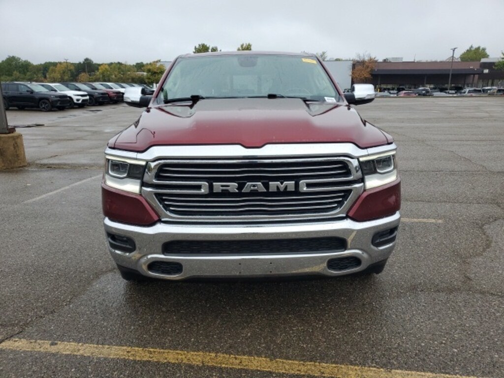 Our Service Department & Express Lane are open convenient hours during the week and Saturday. We also offer a free service shuttle for local customers, a customer lounge with free coffee and popcorn, as well as free wireless internet. We also offer a free car wash with every service. Quick Order Package 25H Laramie, FCA US LLC Certified Pre-Owned Certified, #1 Seat Foam Cushion, 10 Speakers, 3 Rear Seat Head Restraints, 3.21 Rear Axle Ratio, 4 Way Front Headrests, 4-Wheel Disc Brakes, 48V Belt Starter Generator, 8.4" Touchscreen Display, ABS brakes, Adjustable pedals, Air Conditioning, Alloy wheels, AM/FM radio: SiriusXM, Apple CarPlay, Apple CarPlay/Android Auto, Audio memory, Auto-dimming door mirrors, Auto-dimming Rear-View mirror, Automatic temperature control, Brake assist, Bumpers: chrome, Compass, Delay-off headlights, Driver door bin, Driver Seat Memory, Driver vanity mirror, Dual front impact airbags, Dual front side impact airbags, Electronic Stability Control, Front anti-roll bar, Front Center Armrest w/Storage, Front dual zone A/C, Front fog lights, Front reading lights, Front Seat Back Map Pockets, Front wheel independent suspension, Fully automatic headlights, Garage door transmitter, Google Android Auto, GPS Antenna Input, Heated door mirrors, Heated Front Seats, Heated front seats, Heated Steering Wheel, Heated steering wheel, Illuminated entry, Integrated Center Stack Radio, Leather steering wheel, Leather Trim 40/20/40 Bench Seat, Low tire pressure warning, Manufacturer's Statement of Origin, Memory seat, Occupant sensing airbag, Outside temperature display, Overhead airbag, Overhead console, Panic alarm, ParkView Rear Back-Up Camera, Passenger door bin, Passenger vanity mirror, Pedal memory, Power 4-Way Driver Lumbar Adjust, Power 4-Way Passenger Lumbar Adjust, Power 8-Way Driver & Passenger Seats, Power door mirrors, Power driver seat, Power passenger seat, Power steering, Power windows, Radio data system, Radio: Uconnect 4 w/8.4" Display, Rear anti-roll bar, Rear seat center armrest, Rear step bumper, Rear window defroster, Remote keyless entry, Security system, SiriusXM Satellite Radio, Speed control, Split folding rear seat, Steering wheel mounted audio controls, Tachometer, Telescoping steering wheel, Tilt steering wheel, Traction control, Trailer Brake Control, Trip computer, Turn signal indicator mirrors, Variably intermittent wipers, Ventilated Front Seats, Ventilated front seats, Voltmeter, Whee